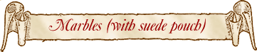 Product Description: Our Marbles (with suede pouch) set (3004) includes a half-cup of glass marbles, two large shooters, a drawstring suede pouch, instructions for three marble games, and a brief history.